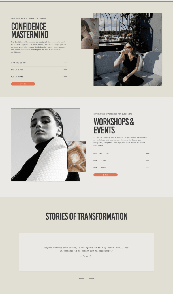 This modern Squarespace website template is designed for coaches who want a clean, strategic, high-converting website without hiring a designer. Perfect for business coaches, confidence coaches, and service-based professionals who want a polished online presence that attracts and converts clients. If you want a website that feels confident, structured, and professionally designed while staying easy to launch, this is it.